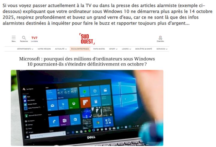 - 14.09.2025 : Non, votre PC Windows 10 ne va pas s'arrêter de fonctionner après le 14 octobre 2025...