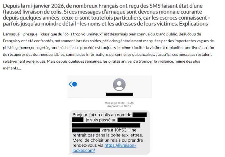 - 29.01.2026 : Arnaque au faux colis : les escrocs disposent désormais de toutes les coordonnées de leurs victimes