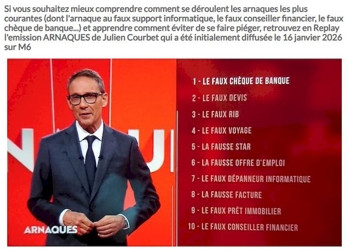 - 30.01.2026 : En Replay sur M6 : émission spéciale 10 arnaques expliquées