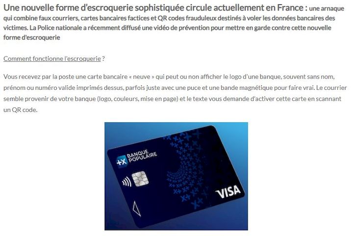 - 10.02.2026 : Nouvelle escroquerie à la fausse CB reçue par courrier, à valider par QR Code